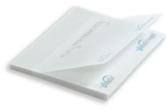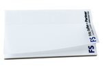 Transparente Haftnotizen mit wasserbasierendem, lösungsmittelfreiem Leim. Abweichende Formate, Blattanzahlen sowie Druck Rückseite auf Anfrage.