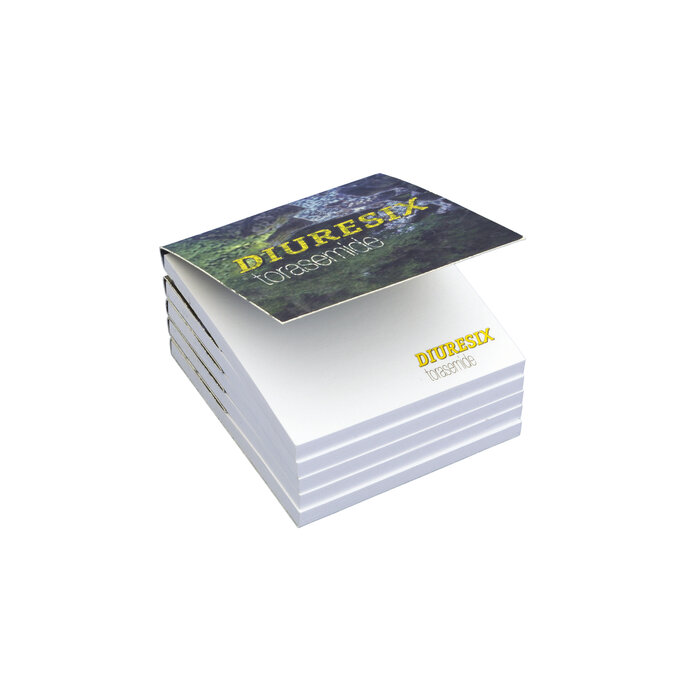 Das Haftnotizset «Hafti® Waterfall» ist zusammengefaltet als kompakter Würfel erkennbar. Aufgefaltet mit 5 Haftnotizblocks überflutet er den Schreibtisch mit vielen bunten Haftnotiz-Zetteln. Verschiedene Motive auf den Haftnotizen oder der Einsatz von individuellen Haftnotiz-Papierfarben sind möglich. Folienkaschierung ist in den Varianten glänzend, matt oder Softtouch möglich. Spezielle Ausrüstungen: Partielle Lackierung, Hoch- und Tiefprägung sowie Folienprägung.
